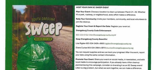 We Need your help for the 2026 SC Sweep. Please help us to Cleanup Orarangeburg County for America's 250th Anniversary on July 4, 2026.